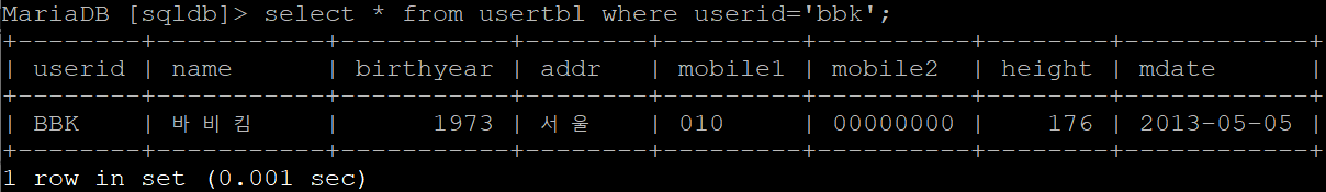- userid๊ฐ bbk์ธ ํ ๊ฒ์