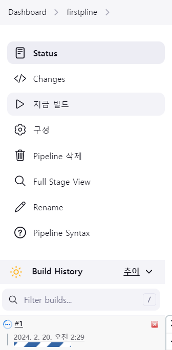 ์๋ Build History์์ #1์ด ์ถ๊ฐ๋๋ ๊ฒ ํ์ธ ๊ฐ๋ฅ