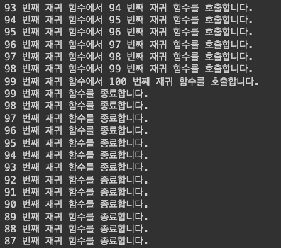 '์ฌ๊ท ํจ์๋ฅผ ํธ์ถํฉ๋๋ค' ๋ผ๋ ๋ฌธ์์ด์ ๋ฌดํํ ํธ์ถํ๋ค.